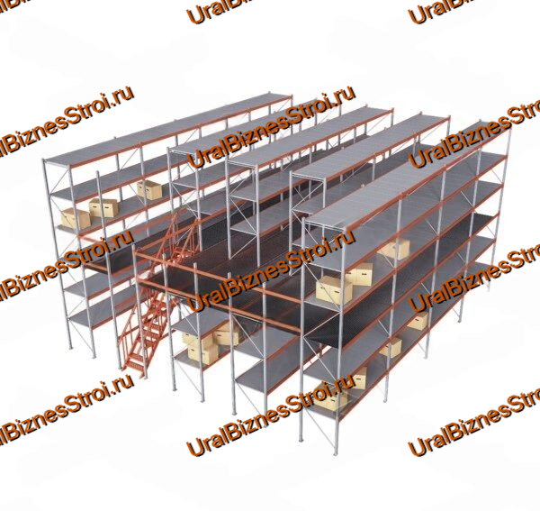 Мезонинный стеллаж 12м*12м 2 этажа 288 м2