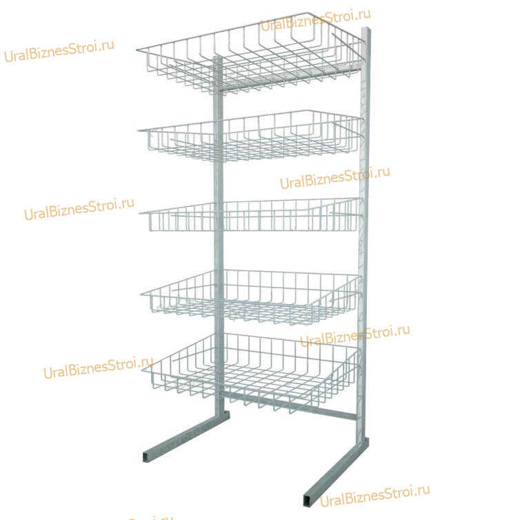 Каталог Торговое оборудование для магазинов Проволочная продукция (Корзины/стойки) Стойка прикассовая 1800х800х450 , 5 корзин